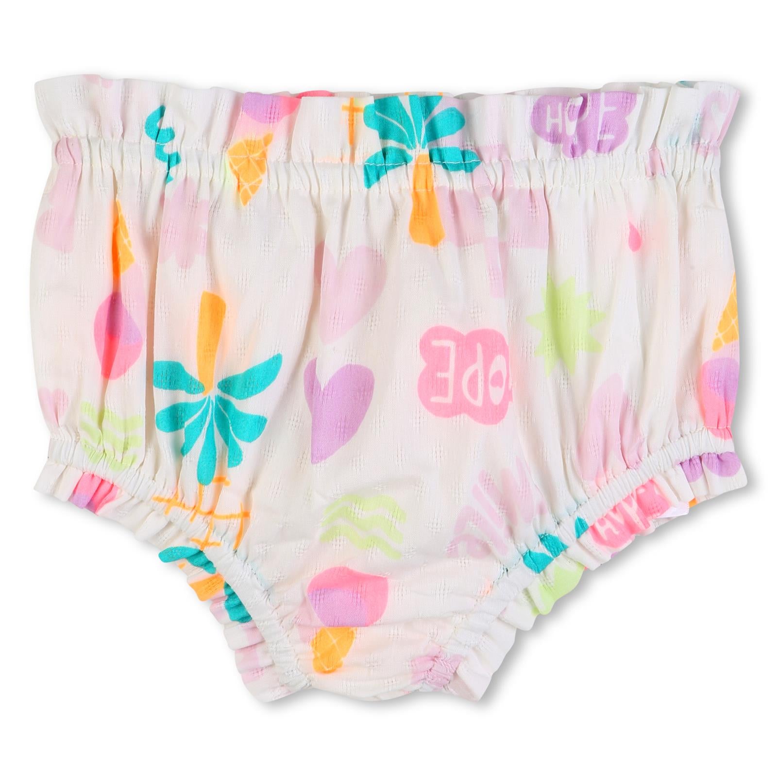 Sous le soleil, cet ensemble BILLIEBLUSH allie confort et raffinement. La robe à manches volantées, habillée d'un délicat imprimé plein été, se pare d'un détail coloré à la taille et d'une jolie ouverture au dos. La culotte bouffante élastiquée s'accorde parfaitement à la silhouette, créant un duo plein de tendresse et de fantaisie pour les beaux jours.