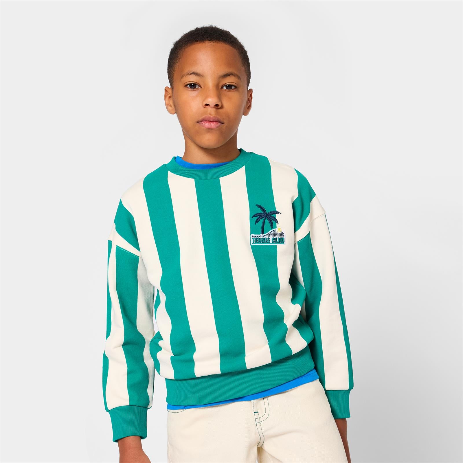 Rayé comme un ciel d'été, ce sweat KIDS AROUND enveloppe les enfants d'une douceur réconfortante. Son molleton moelleux invite au mouvement, tandis que le badge brodé à la poitrine signe une allure pleine de personnalité. Entre confort et fantaisie, c'est la pièce parfaite pour vivre, jouer et rêver en toute liberté. La matière principale de ce produit contient du coton issu de l'agriculture biologique