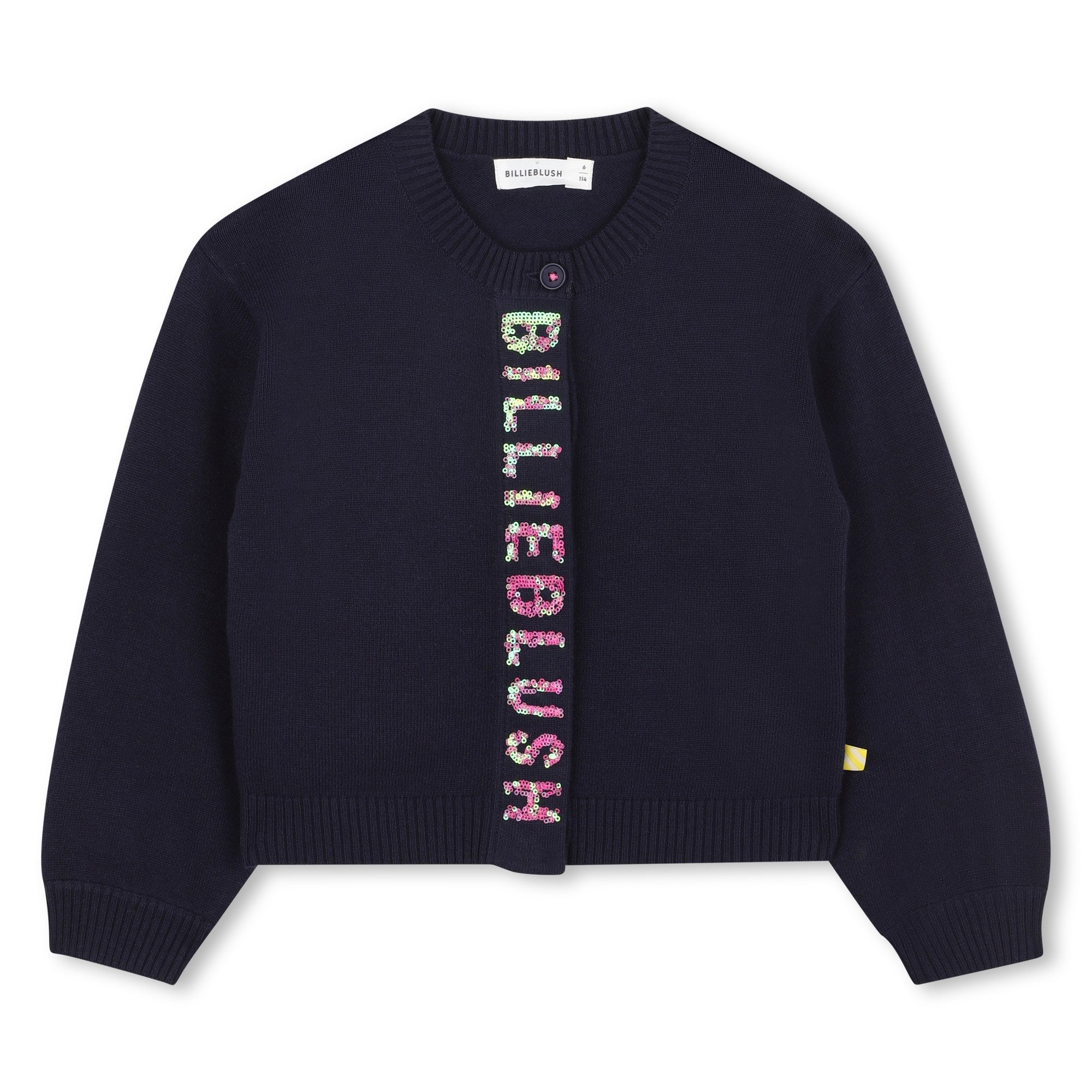 Ce cardigan en tricot BILLIEBLUSH est un choix parfait pour allier confort et style. Sa fermeture boutonnée sur le devant et la bande ornée de sequins, sur laquelle est inscrit le logo BILLIEBLUSH, ajoutent une touche de brillance et de modernité. Un modèle délicat et élégant, idéal pour compléter les tenues de votre enfant avec une note scintillante et tendance.